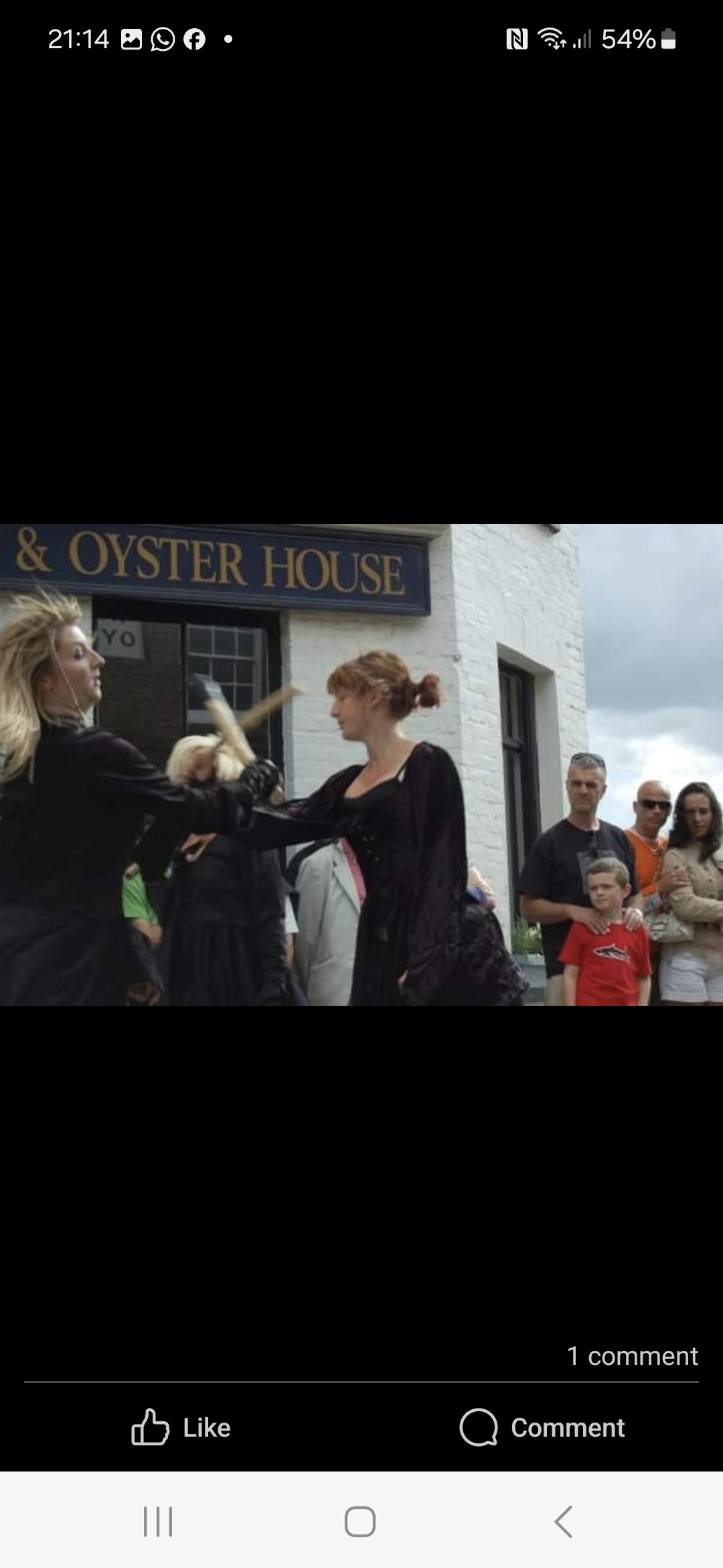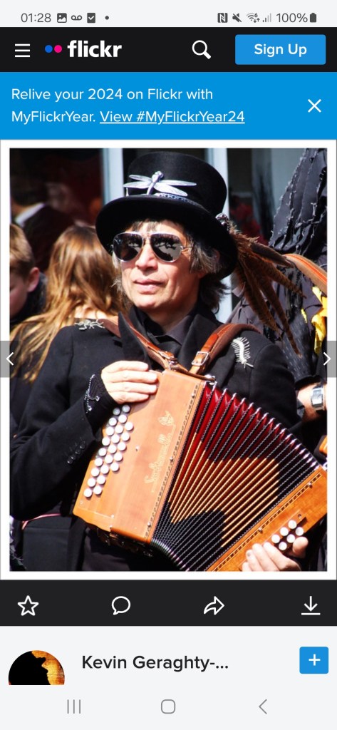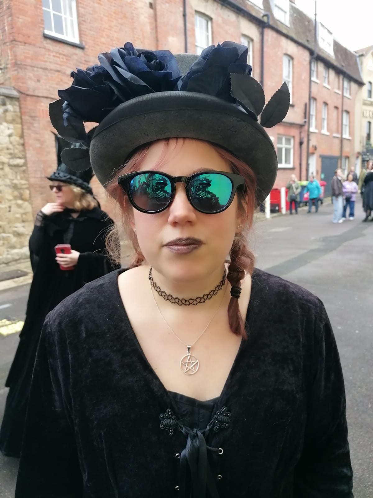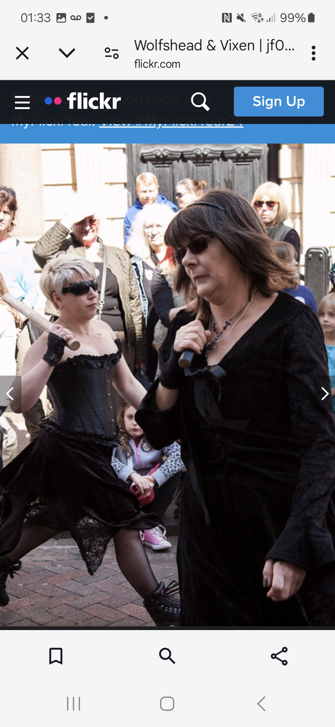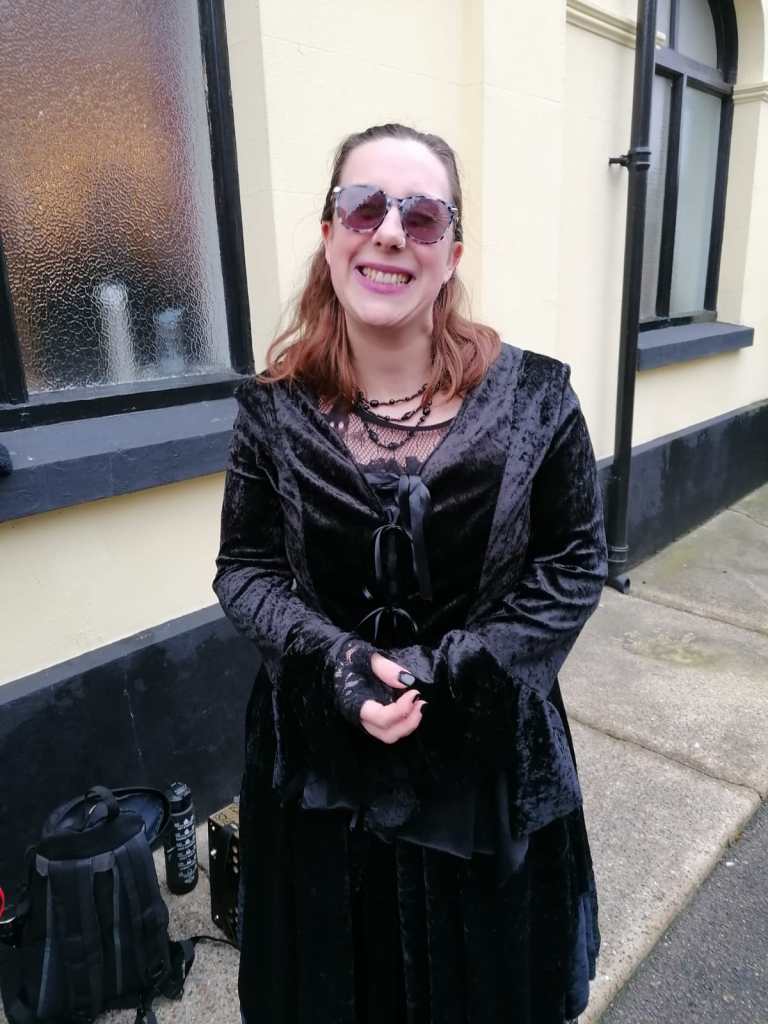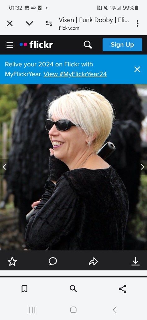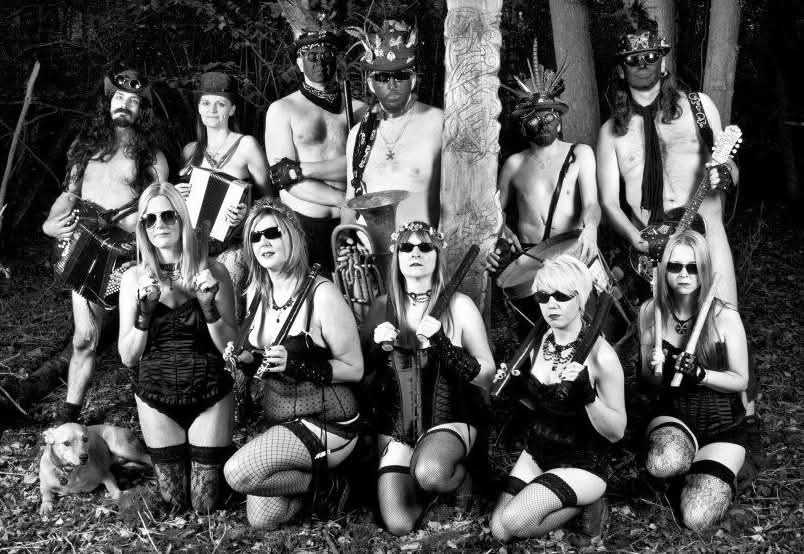 “Wolf’s Head and Vixen are extraordinary. The Pack In Black, as they call themselves, were the first to adopt that colour alone, when they formed in 1995. The men have purple faces, in black rags, but with Goth touches: piratical silver jewellery and mirror sunglasses. The women are in purple lipstick, black nail varnish and black lace fingerless gloves, with chokers at their throats above bounteous pale cleavages, and flowing dresses made from lace and velvet. Oh and big, clumpy Dr Martens boots.”